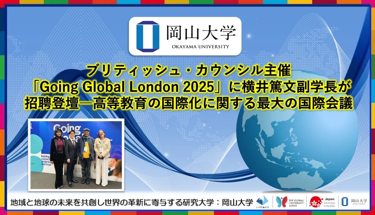 2025年10月28日から30日、岡山大学の副学長である横井篤文氏が、英国ブリティッシュ・カウンシルが主催する「Going Global London 2025」に参加しました。この会議は、英国における高等教育の国際化に特化した重要な国際会議であり、世界中から集まった高等教育の指導者たちが集結しました。