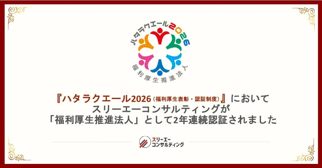 株式会社スリーエーコンサルティングは、大阪に本社を構え、ISOおよびプライバシーマーク取得の支援を行う企業です。この度、同社が福利厚生の充実に積極的に取り組んでいることが評価され、福利厚生を推進する法人として「ハタラクエール2026」に認証されました。これは、従業員のモチベーションや生産性を高めるための制度をしっかりと運用している法人に贈られる栄誉です。