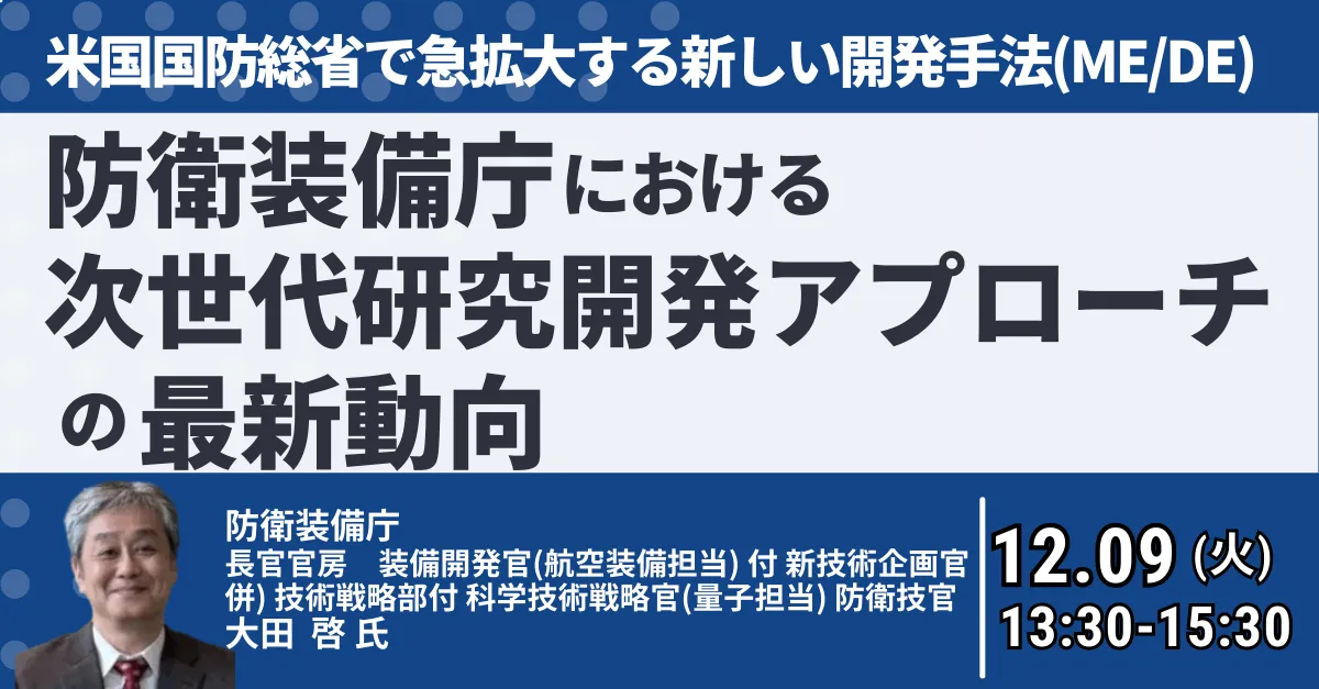 日本計画研究所(JPI)が主催する「防衛装備庁における次世代研究開発アプローチの最新動向」セミナーが、2025年12月9日(火)に開催されます。このセミナーでは、航空装備担当の新技術企画官である大田啓氏が講師を務め、最新の開発手法について詳しく解説します。