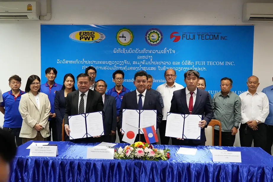 フジテコム株式会社は2025年9月25日、ラオス人民民主共和国の首都ビエンチャンにおいて、首都ビエンチャン水道公社、およびラオス水道協会とともに漏水防止技術に関する覚書(MOU)を締結しました。このMOUは、ラオス国内での無収水率の削減を目指し、フジテコムの先端技術を提供することを約束するものです。