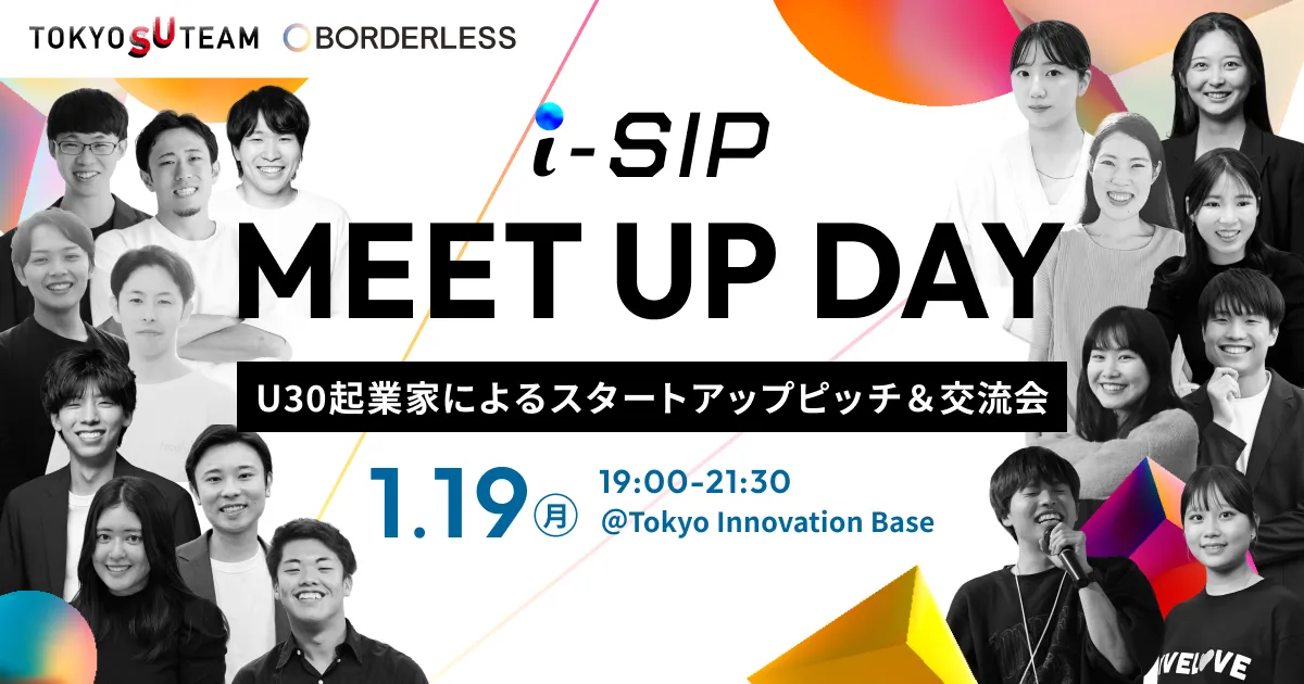 2026年1月19日、Tokyo Innovation Baseにて、U30の社会起業家たちが一堂に会する「i-SIP MEET UP DAY」が開催されます。このイベントは、社会課題に挑む若手起業家たちがそのビジョンや取り組みを発信し、ネットワーキングを行う場として設計されています。