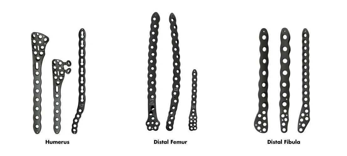 「Pangea」は、上腕骨・大腿骨・脛骨・腓骨といった骨折部位の治療に対応した、合計20種類のアナトミカルプレートをラインアップしており、患者一人ひとりの状態に応じた柔軟な治療が可能です。
