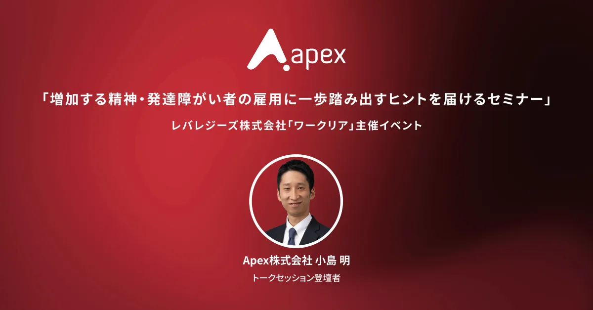Apex株式会社とレバレジーズ株式会社の主催によるセミナーが、2025年9月8日(月)に東京で開催されます。本セミナーは、障がい者雇用支援月間にあわせ、特に精神および発達障がいを持つ方々の雇用に関する課題と解決策を見出すための貴重な機会です。