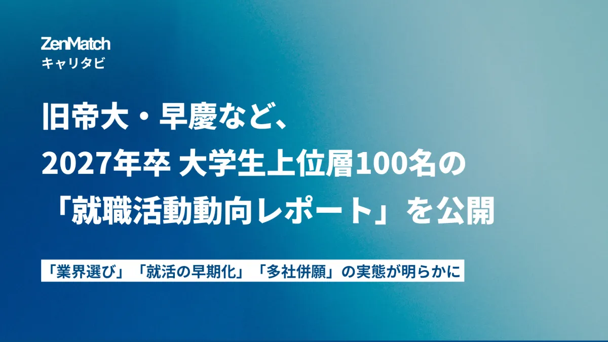 2023年10月、株式会社ZenXが運営するキャリア支援サービス「ZenMatch」は、27卒(2027年卒業予定)の大学生を対象にした就職活動動向レポートを公開しました。このレポートは、旧帝大・早慶などの上位層100名を集計したデータを基にしており、今後の就職活動における重要なインサイトを提供しています。
