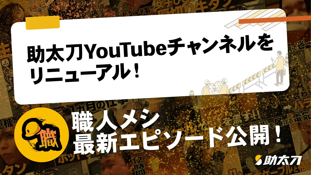 従来、助太刀のYouTubeチャンネルでは、サービス導入事例やインタビューを公開していましたが、建設現場での職人たちの実働を捉えた『職人の労働後メシ〜究極の空腹スパイス〜』も運営していました。この2つのチャンネルを統合し、一つのプラットフォームとして新たな魅力を発信することにしたのです。