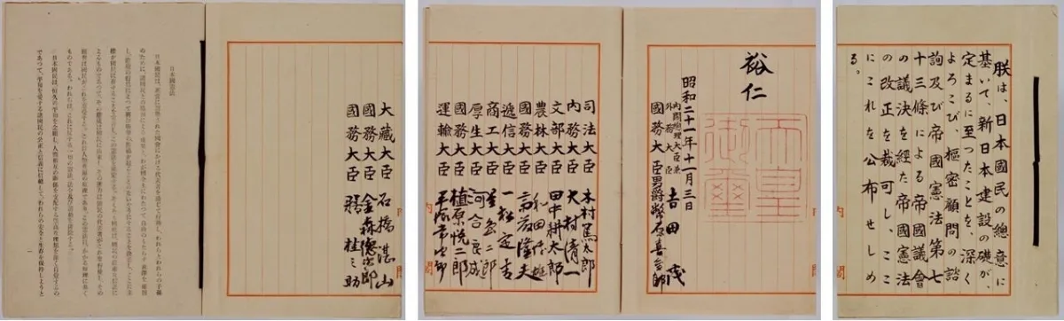 展示は常設展示室にて行われ、通常は複製が展示されていますが、この期間に限り本物の原本が公開されます。日本国憲法は1946年11月3日に公布され、翌年の5月3日から施行されました。昭和23年に制定された国民の祝日に関する法律によって、5月3日は「憲法記念日」として定められています。憲法の基本原則には、国民主権、基本的人権の尊重、平和主義が含まれ、戦争の放棄や三権分立、地方自治の保障などが列挙されています。