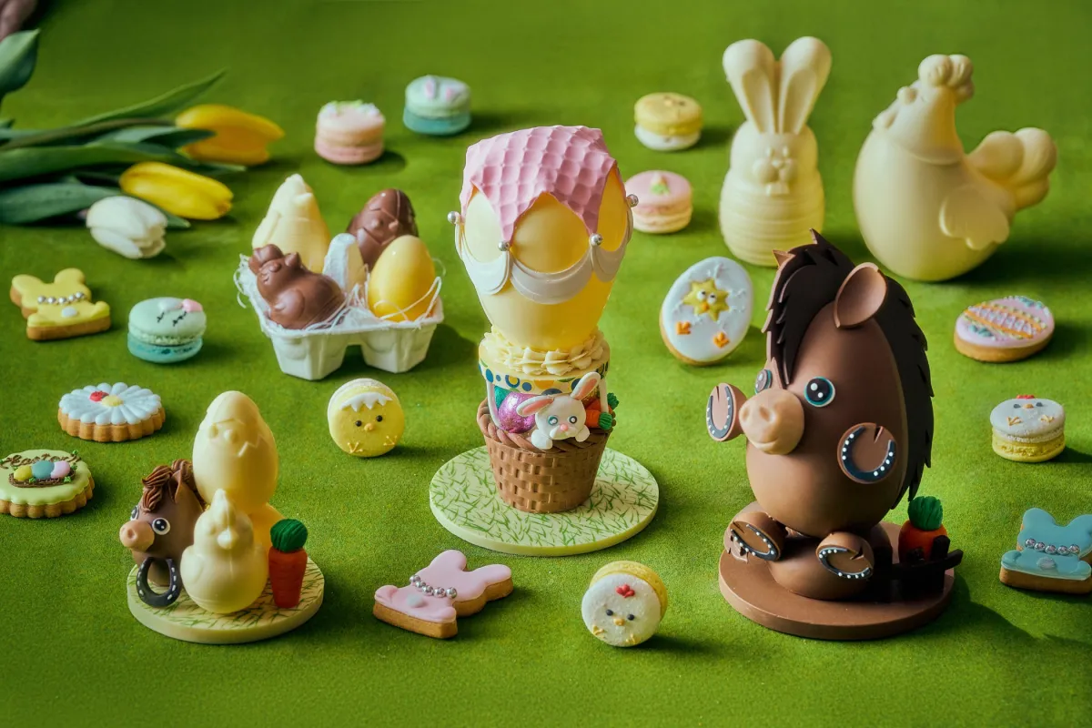 今年のイースタースイーツコレクションは、愛くるしいイースターバニーやカラフルなイースターエッグをテーマにした、5種類のスイーツとブレッドがラインナップ。新作として登場する「イースターエッグ チョコレート」は、気球に乗ったイースターバニーと、2026年の干支「午(うま)」を表現するデザインが施されたユニークな一品です。細やかな工芸が施されたこのチョコレートは、ギフトにも最適です。