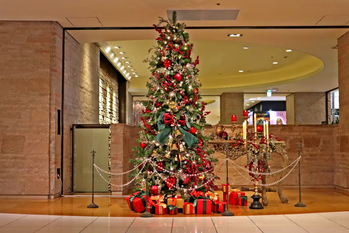 ホテルのエントランスには、高さ2.4メートルもの壮大なクリスマスツリーが飾られています。訪れる人々に心温まるおもてなしと、特別な思い出を提供することを目指しているそうです。このツリーはホテルのシンボルとなっており、毎年多くの観光客や地元の方々がその前で写真を撮る姿が見られます。クリスマスシーズンには、訪れる人々の笑顔が絶えません。