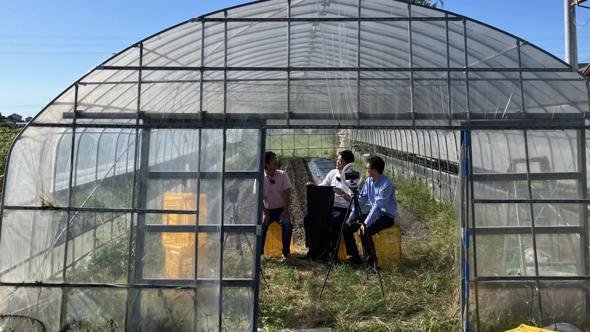 動画は、穏やかな秋晴れの中、ビニールハウス内で撮影されました。ビニールハウスの中は、実際の農作業の真っ直中。こちらの映像では、農家の皆さんが直面する様々な課題も明らかになります。