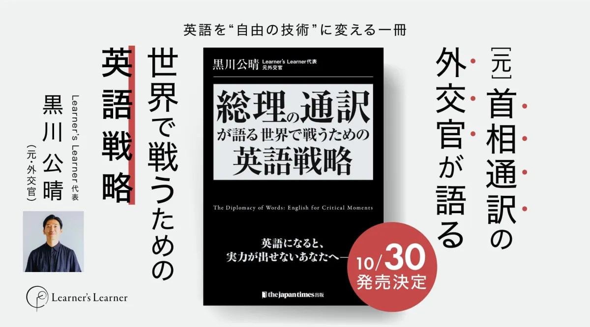 元首相通訳官として活躍した黒川公晴氏が、10月30日に書籍『総理の通訳が語る――世界で戦うための英語戦略』を発刊します。彼の豊富な経験に基づいた実践的なアプローチが、多くの人々に新たな洞察を提供することが期待されています。