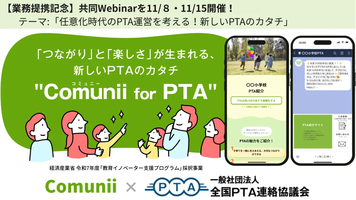 一般社団法人全国PTA連絡協議会と株式会社Comunii(コミュニー)が手を組んで、PTA活動をより楽に、そして魅力的にするWebサービス『Comunii for PTA』の普及を推進しています。この提携は、PTA活動の様々な課題に応えるためのものであり、特に保護者同士のつながりを促進し、家庭・学校・地域の協力を促すことを目指しています。