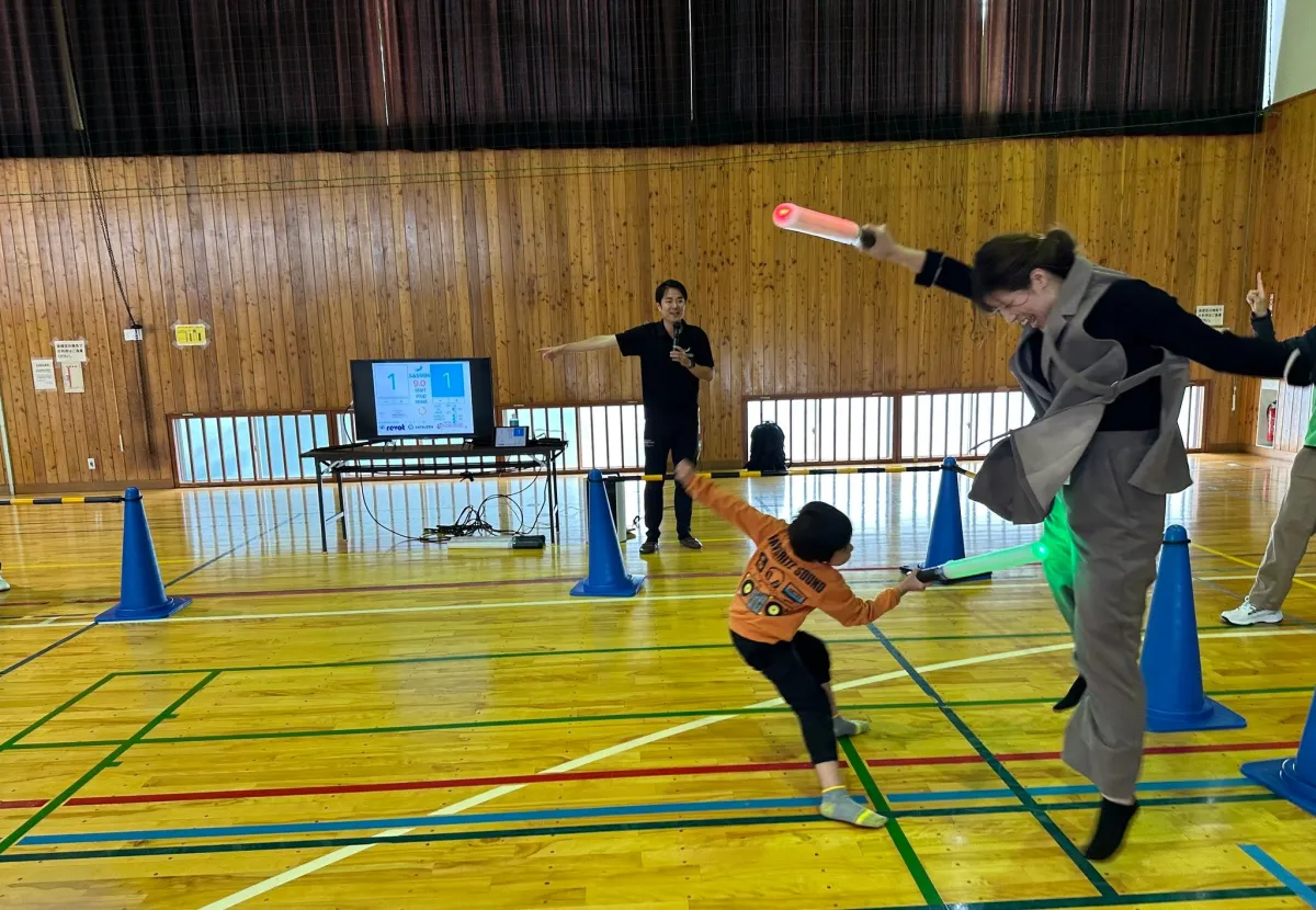 令和7年10月19日(日)、長野県松本市の寿体育館で開催された「令和7年度 寿スポーツフェスティバル」。このイベントで、次世代デジタルスポーツ《SASSEN(サッセン)》が体験できるプログラムが行われ、多くの地域の家族が参加しました。