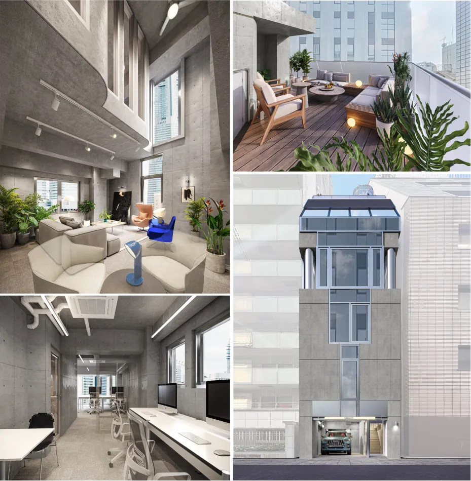 基準階は中央の吹き抜けを介して2つの執務室がつながり、それぞれが独立したエリアとしても機能します。視界や気配を適度に感じながらも、個々のスペースをしっかり確保する設計になっています。さらに、自然光が心地よく差し込む屋上テラスもあり、地上でのミーティングやリフレッシュタイムに最適です。