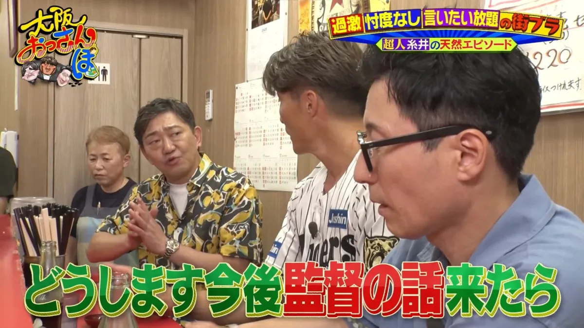 次は、1964年から営業を続ける町中華「おばちゃんとこ」へ。店主は元高校球児を務めたということで、糸井さんのファンでもあります。ここで、天然エピソードについて盛り上がり、黒田さんから今後の監督業の話も飛び出し、「やります」という糸井さんの即答に、期待感が高まります。