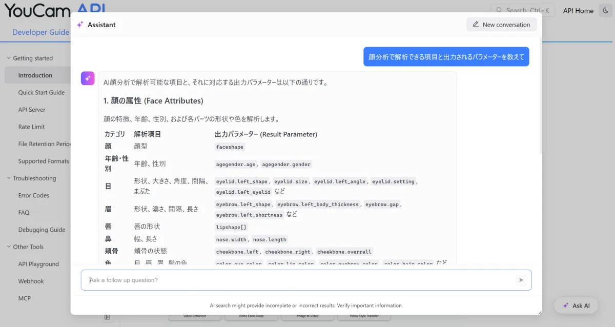 パーフェクト株式会社は、同社が開発したAIおよびAR技術を活用した「YouCam API」に新たにAIアシスタント機能「Ask AI」を追加しました。この機能は、開発者がAPIに関する質問を即座に解決することを目的としており、技術者だけでなく非技術者にも便利です。