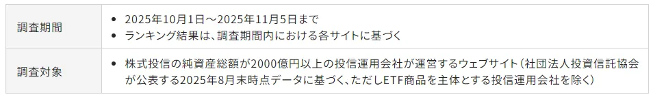 2025年11月26日、株式会社ブロードバンドセキュリティが「Gomez 投信運用会社サイトランキング2025」を発表しました。このランキングは、投資信託運用会社のウェブサイトをユーザー視点で評価し、サイトのパフォーマンスや利用しやすさを客観的に示すものです。