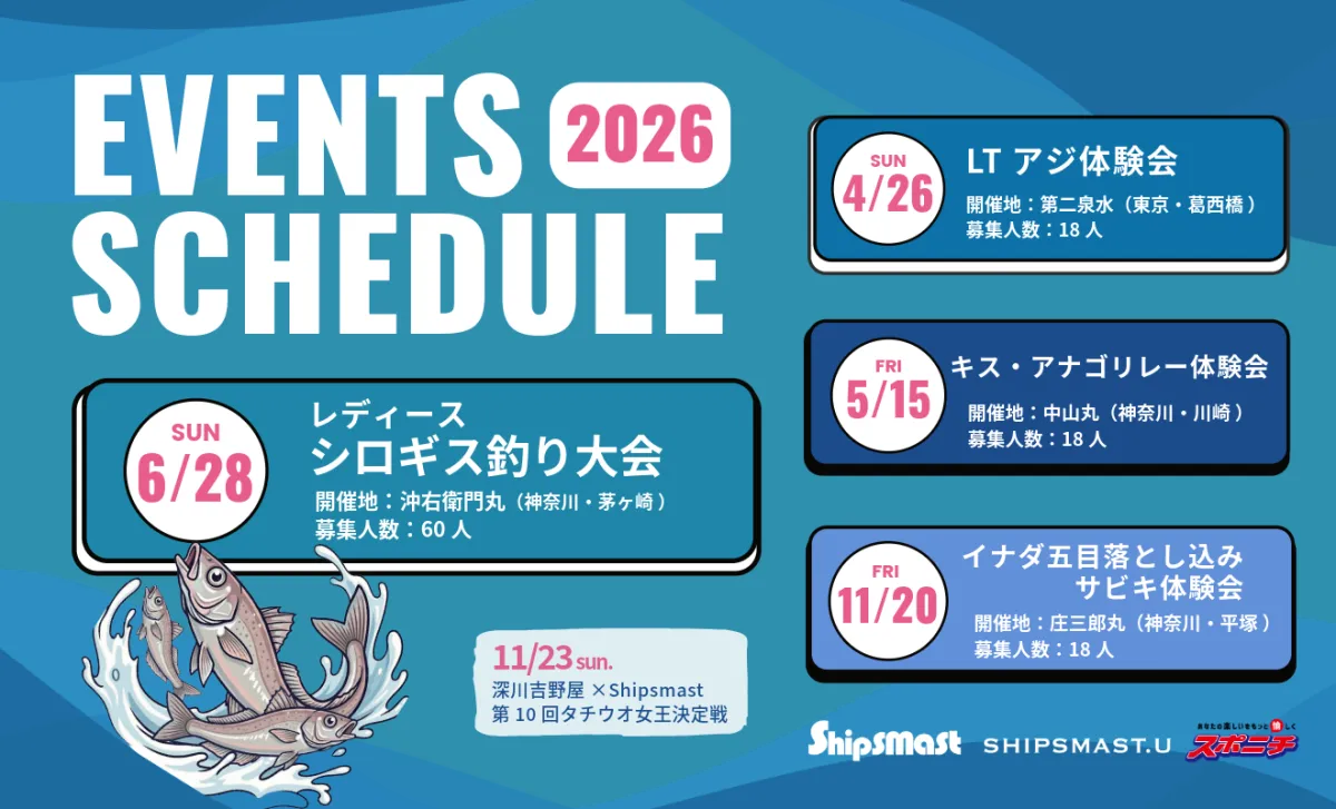 特に注目したいのは、詳細未発表のレディース・シロギス釣り大会。女性アングラーたちが集い、思い出に残る釣り体験を分かち合います。