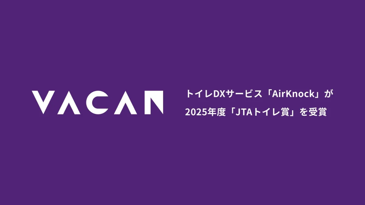 2025年度の「第17回JTAトイレ賞」で、株式会社バカンが開発したトイレDXサービス「AirKnock(エアノック)」が維持・管理部門において栄えある賞を受賞しました。