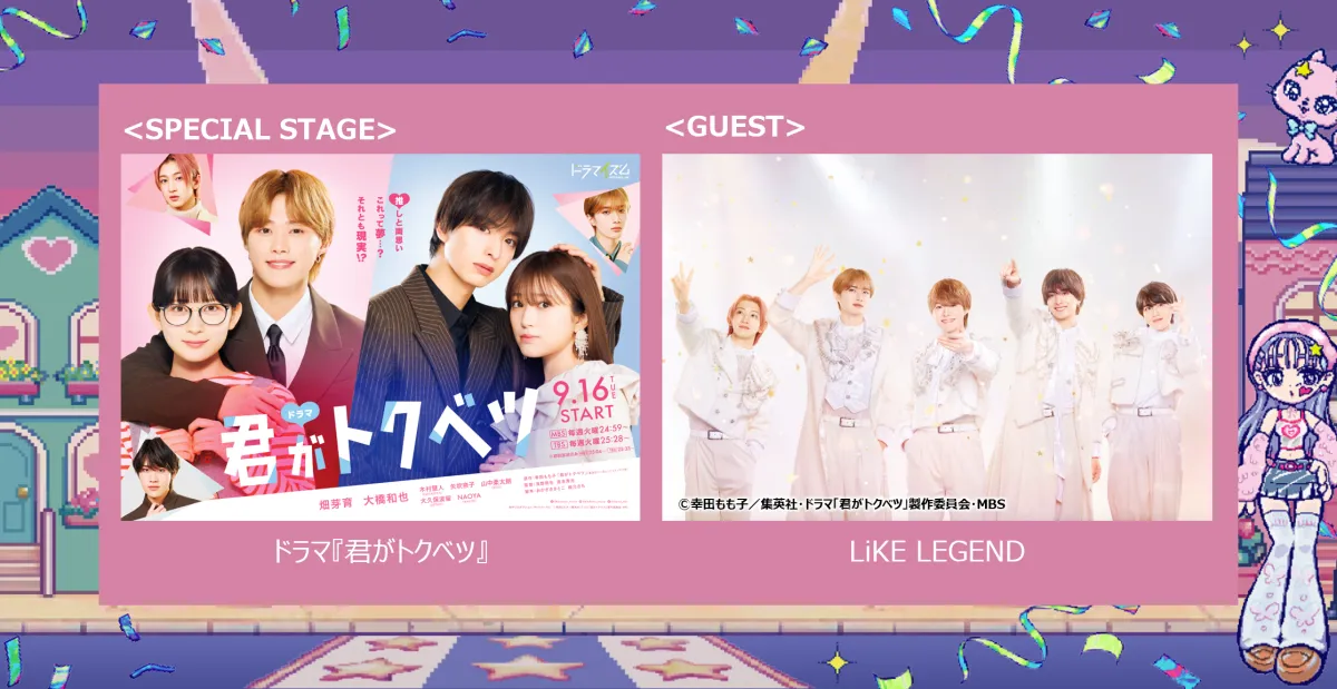 2025年10月18日、幕張メッセで開催される「Rakuten GirlsAward 2025 AUTUMN/WINTER」という日本最大のファッション&音楽イベントに、注目のドラマ『君がトクベツ』の特別ステージが設けられ、その中で劇中に登場するアイドルグループLiKE LEGENDがパフォーマンスを披露することが決まりました。