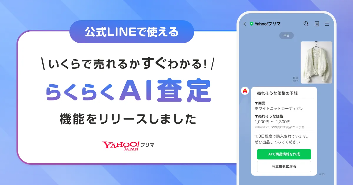 LINEヤフー株式会社が提供するフリマアプリ「Yahoo!フリマ」は、ユーザーの出品体験を格段に向上させる新機能「らくらくAI査定」を発表しました。この機能は、LINE公式アカウントに写真を送信するだけで、AIが相場価格や商品説明を提案してくれるというものです。フリマ市場が活性化する中、簡単に利用できるサービスとして注目されています。