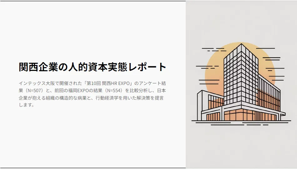 セミナーの基礎データとして公開されている『関西企業の人的資本実態レポート2025』は、現在ウェブ上で無料で入手できます。参加できなかった方も、ぜひ課題解決の参考にしてみてください。