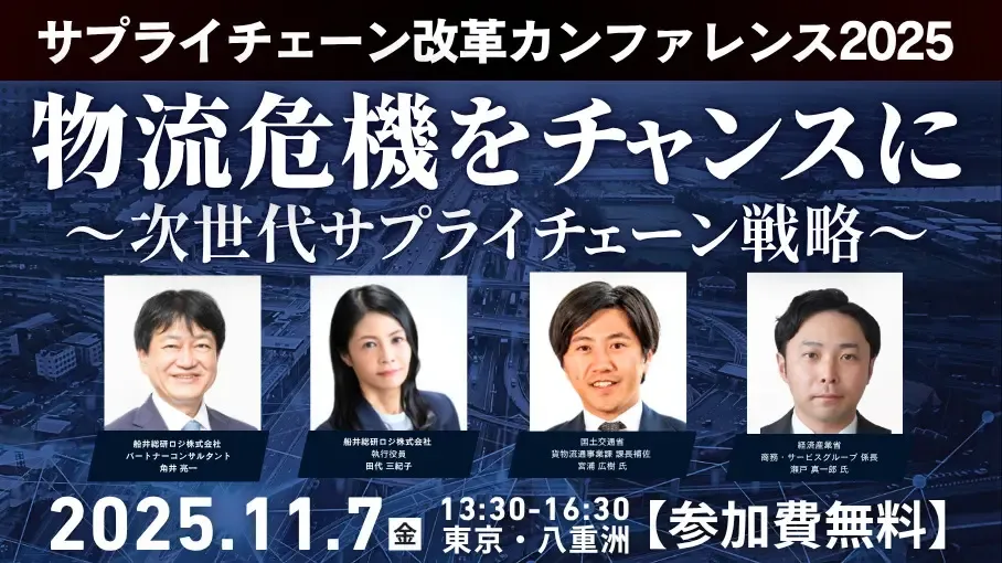 2025年11月7日(金)、東京・八重洲にて、船井総研ロジ株式会社が主催する「物流危機をチャンスに変えるサプライチェーン改革カンファレンス2025」が開催されました。このカンファレンスは、現代の物流業界における重要なトピックを議論し、最新の戦略や事例を共有する場となりました。