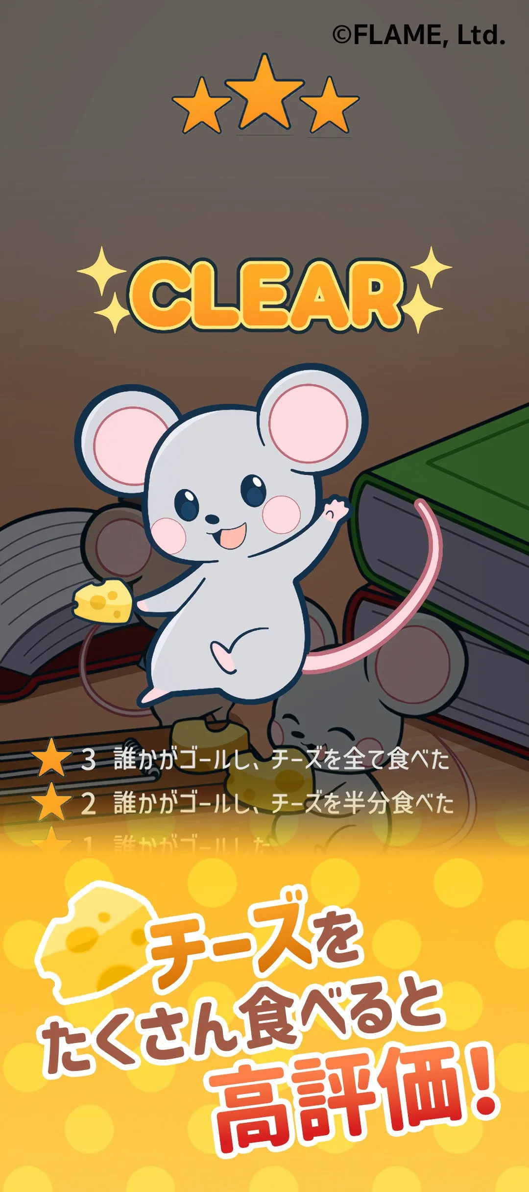 『メイちゅー』の目的は、迷子になったネズミをゴールへ導くこと。プレイヤーは、ブロックの配置を工夫しながら、ネズミが進む道を整える必要があります。しかし、ゴールに着く前に必ずチーズを食べさせなければなりません。もしこのチーズの存在を忘れてしまうと、ネズミは満足せず、ゲームオーバー。ちょっとした油断が、ゲームの成否に大きく影響するという緊張感がたまりません!