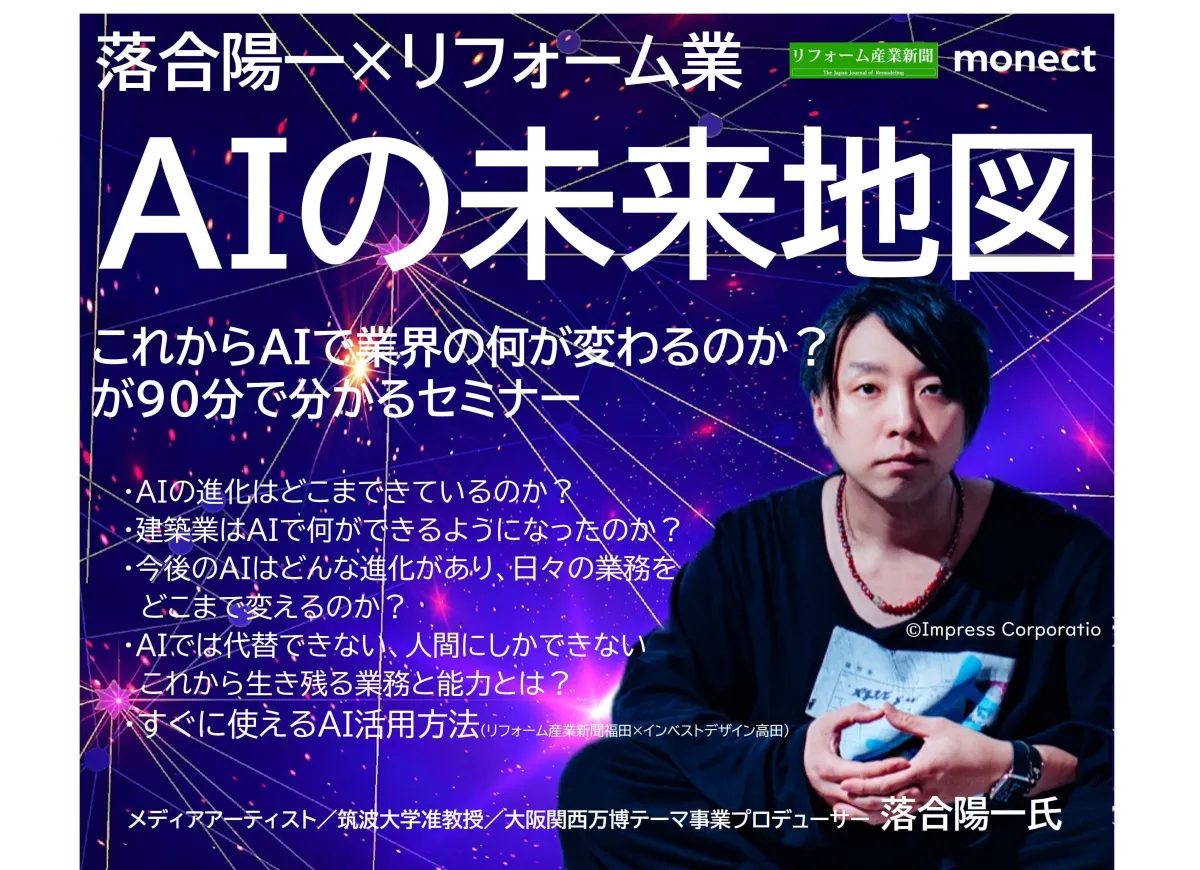 2025年12月10日(水)、TKP東京駅大手町カンファレンスセンターにて、インベストデザイン株式会社とリフォーム産業新聞の共催による建築業向けセミナーが開催されます。ゲスト講師には、未来の技術に精通し、万博をプロデュースしたことでも知られる落合陽一氏が登壇します。このセミナーでは、業務の効率化や人材不足への対応策、そして経営判断においてAIがどのように役立つのかを深く掘り下げて解説します。