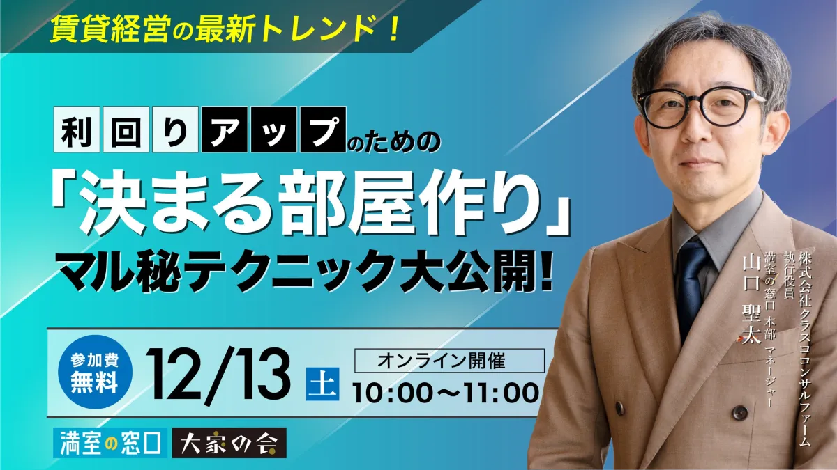 2025年の12月13日、全国の不動産オーナーを対象にした無料のオンラインセミナーが開催されます。主催は株式会社クラスココンサルファームであり、運営する「満室の窓口」による相談窓口の一環として行われます。このセミナーは、最近の人口減少や入居者ニーズの変化など、賃貸業界のトレンドを把握する絶好のチャンスとなるでしょう。