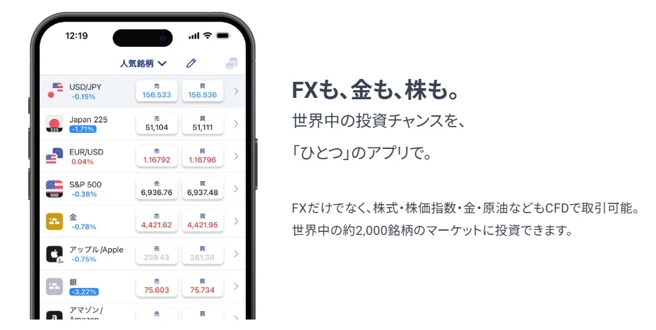 幅広い商品ラインナップ: FXやCFDなど、より多くの金融商品を扱っており、取引の幅が広がります。