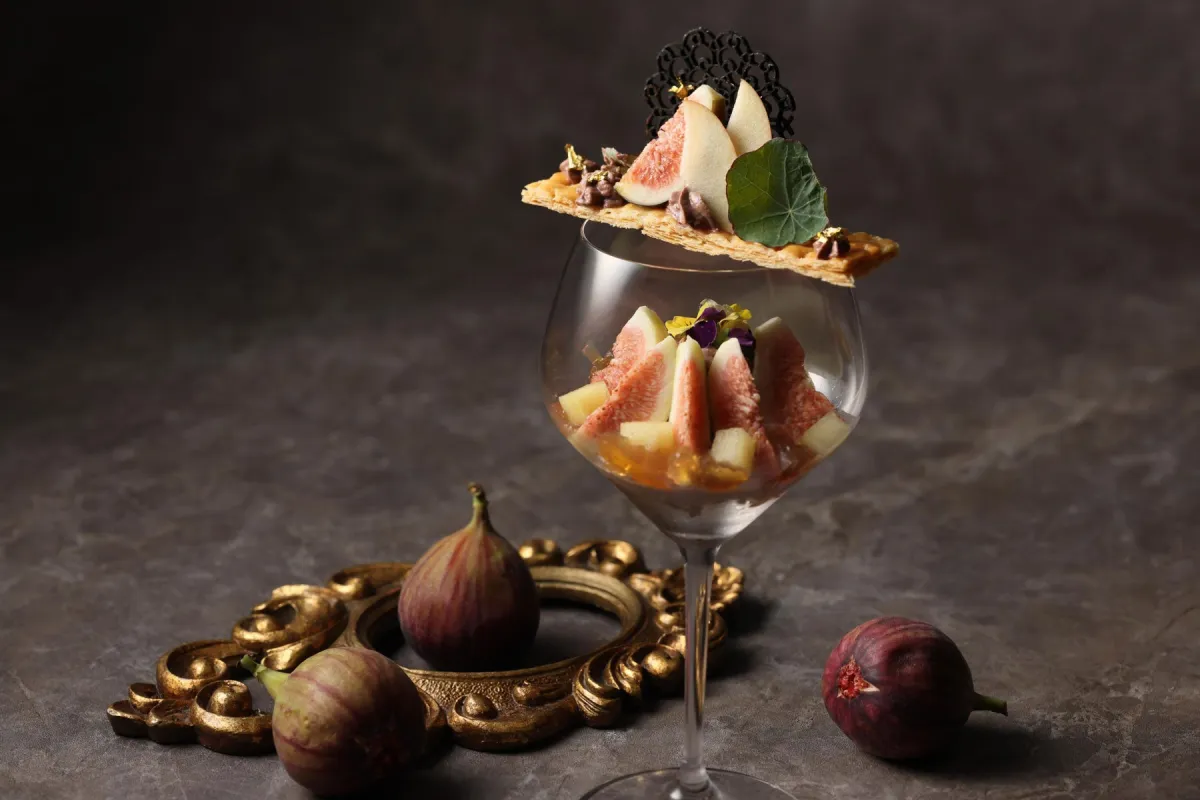 最上階に位置するThe Bar & Loungeでは、食事やお酒の後に楽しむデザートを提供。この秋の新作『大人の贅沢 秋パフェ』は、旬の無花果をふんだんに使った贅沢な一品です。