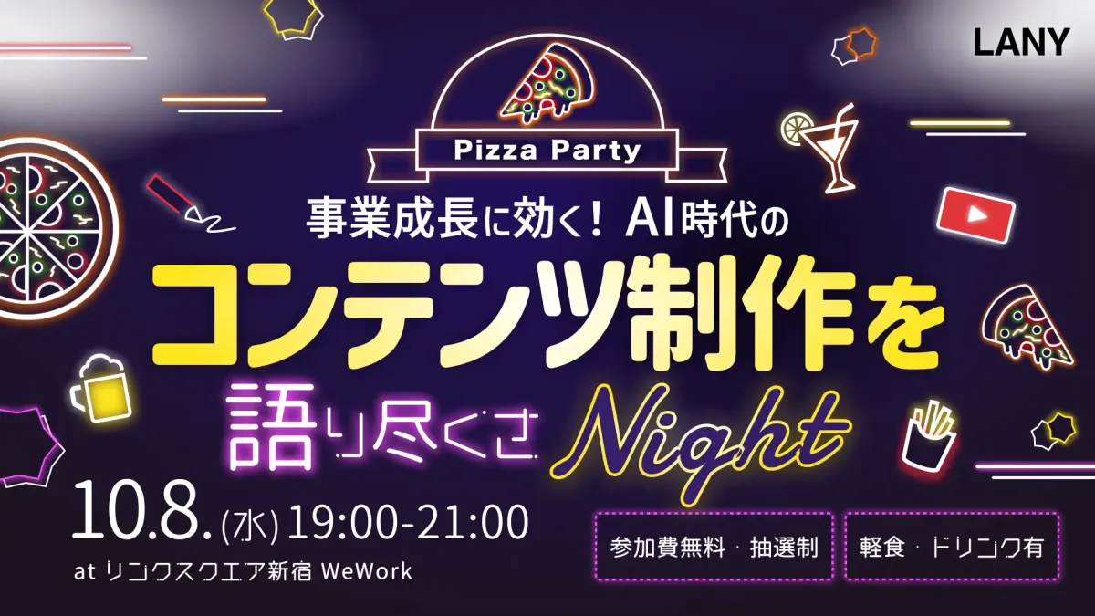 デジタルマーケティングの未来を切り開く株式会社LANYが、2025年10月8日(水)に無料のオフラインイベント「『事業成長に効く!AI時代のコンテンツ制作を語り尽くさナイト!』」を開催します。この特別なイベントは、コンテンツ制作スキルをさらに高めたいと考えている方に最適です。