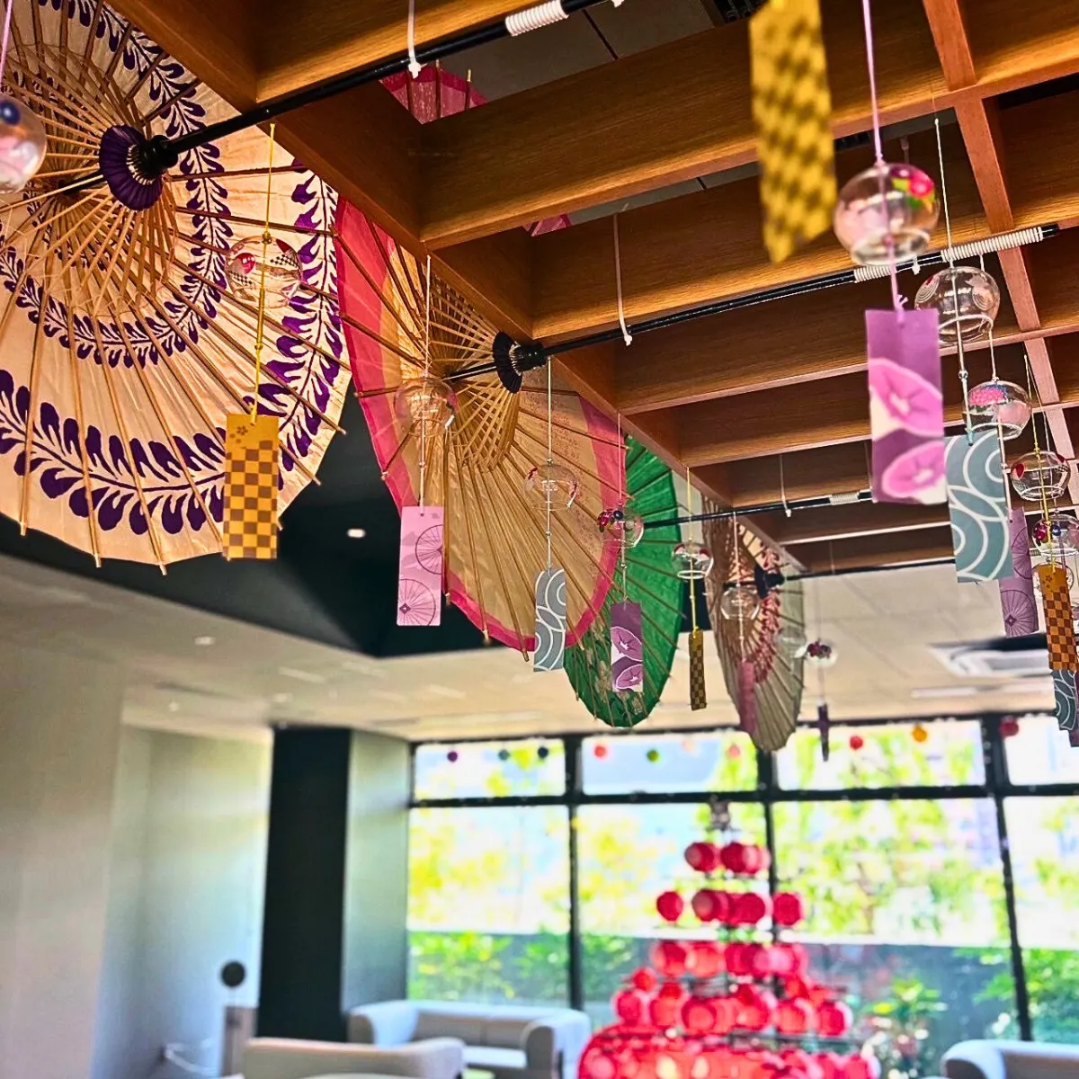 お宿Onnでは、地域おこしを目的とした学生サークル「ブラッシュアップヤマグチ」とのコラボレーションにより、館内を“ちょうちん”や“和傘”で装飾します。お盆の期間を含むこの夏のイベントでは、さまざまな装飾が施され、まるで夏祭りの中にいるかのような体験を提供します。フレーム映えする空間で、ぜひ写真を撮って楽しんでください。