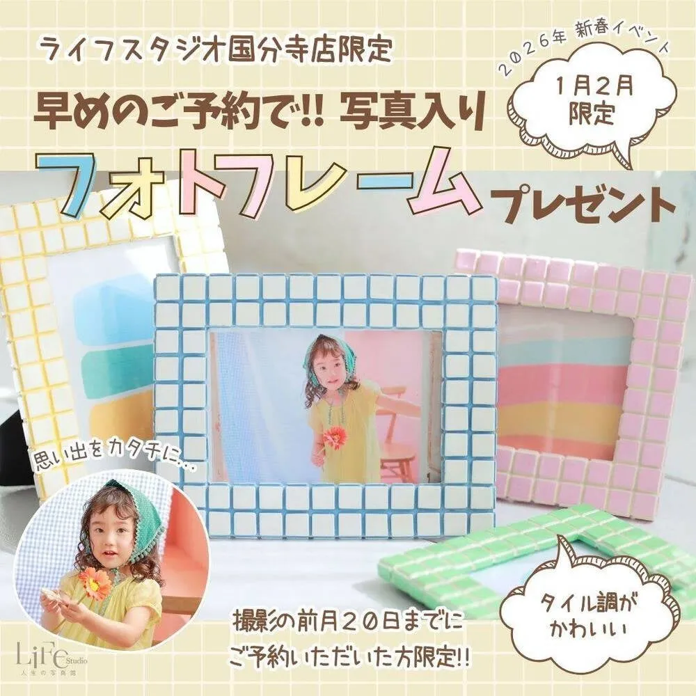 1月・2月は家族写真や誕生日の撮影が増える時期です。この機会に特典のカラーフレーム付きプリントを手に入れて、思い出の一枚を飾ってみてはいかがでしょうか?早めのご予約をご検討ください。