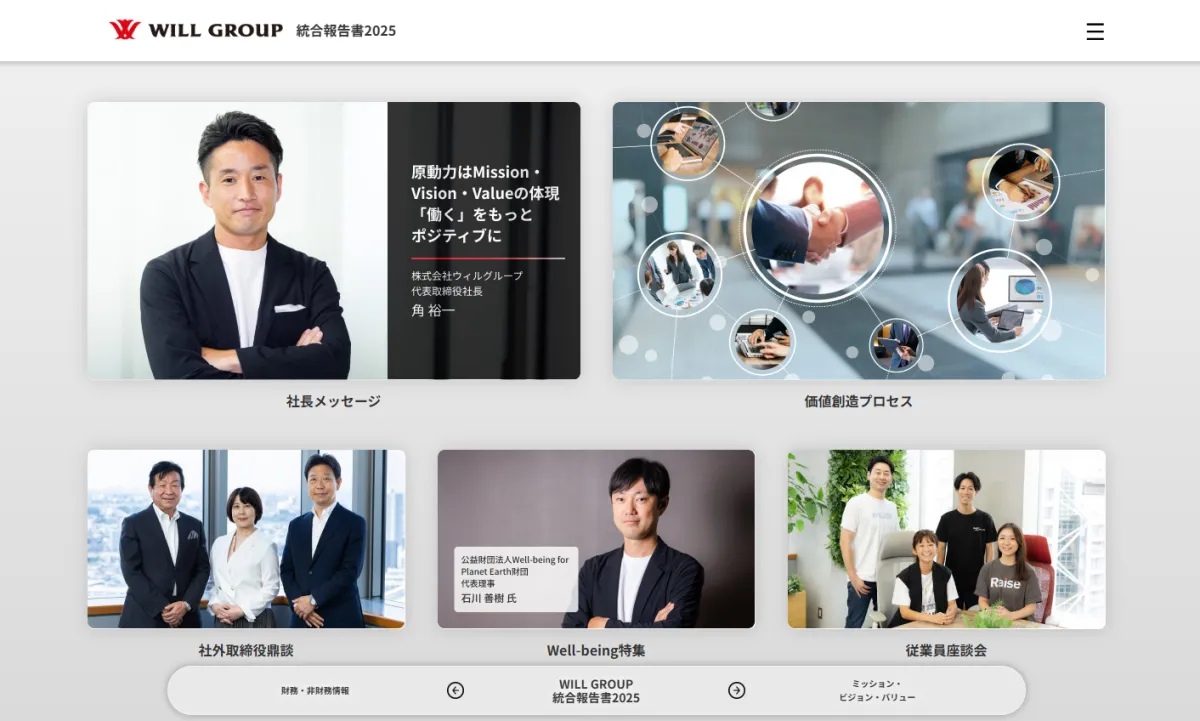 本報告書は、ウィルグループのコーポレートサイト上に設置された専用ウェブサイトから閲覧可能です。以下のリンクよりアクセスできます。