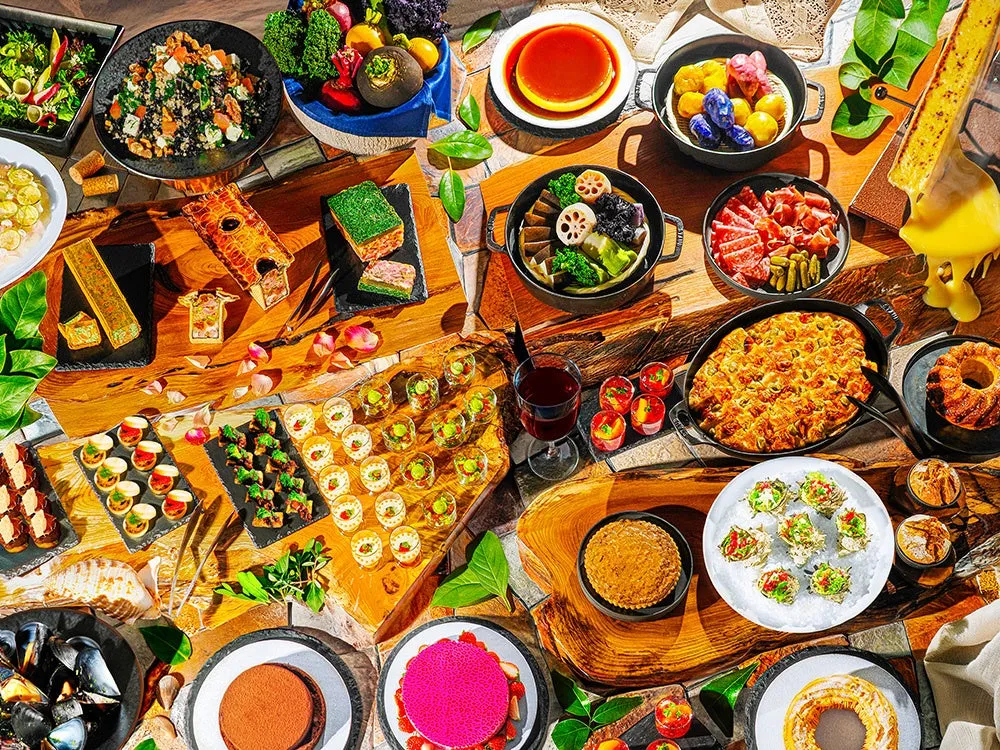 新ブッフェでは、アミューズブッシュやオードブル、メインディッシュ、デザートなどが豊富に揃い、自由に楽しめるスタイルに生まれ変わります。シェフの隈元香己とチームが手掛ける料理は、家庭的でもありながら華やかさを兼ね備えたもの。