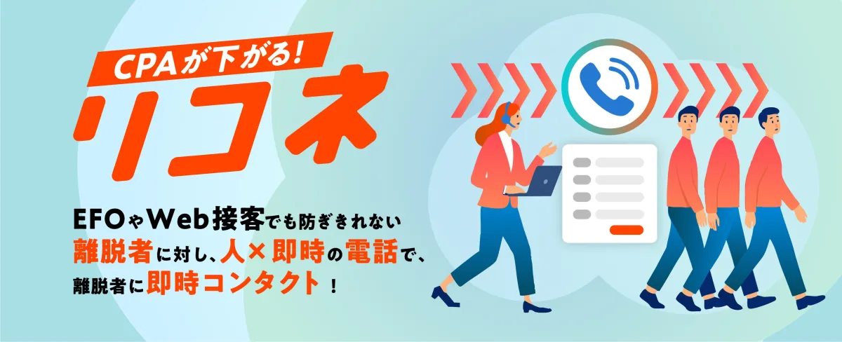 『リコネ』の最大の特長は、即時架電を行うことで、ユーザーの疑問を解消し、再度申込みにつなげる点です。入力途中のユーザーは、すでに興味を持ち、ニーズが顕著になっている状態ですが、わずかな不安や気になることがあると、離脱してしまいます。このタイミングで、直接のコミュニケーションを図ることが重要です。
