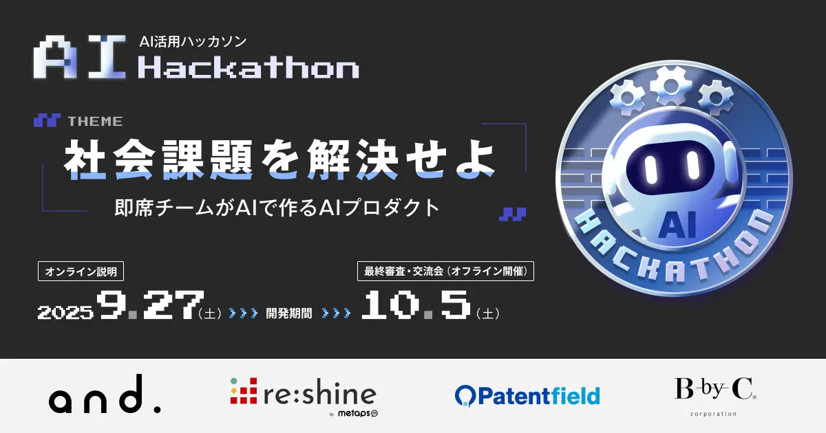 2025年9月27日、株式会社メタップスホールディングスがアンドドット株式会社と共同で実施する「社会課題を解決せよ - 即席チームがAIで作るAIプロダクト」ハッカソンが始まります。これは生成AI技術を学ぶエンジニアにとって、非常に貴重な実践の場です。