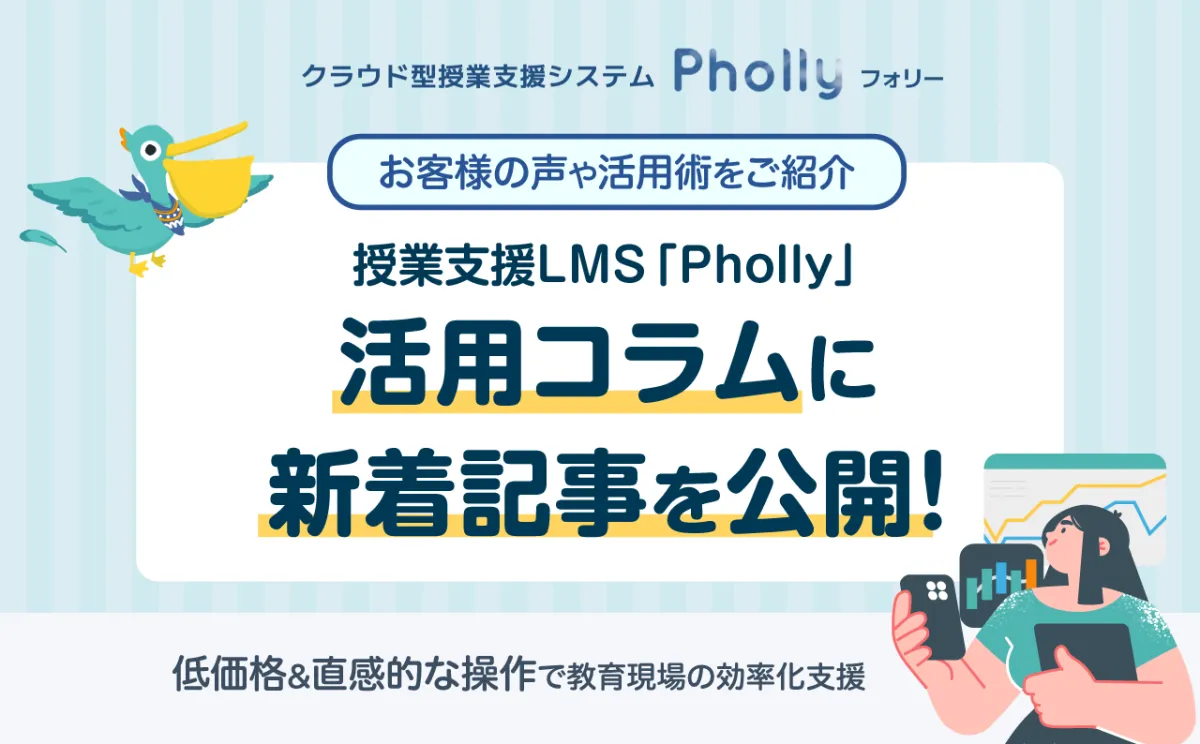 「Pholly」は、単なる授業支援システムにとどまらず、導入することで教育現場全体の生産性向上と質の改善に貢献するツールです。具体的な活用法や導入事例に関する詳細は、公式サイトや新着コラムから確認できます。