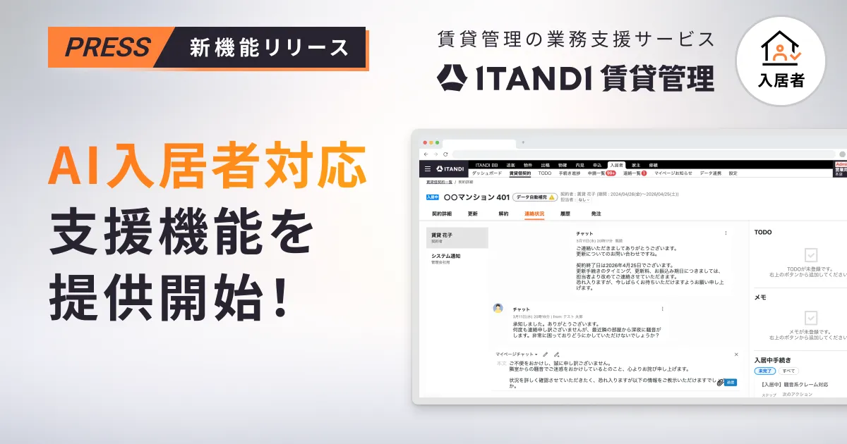 イタンジ株式会社が2026年3月に発表した、賃貸管理の新たな支援サービス「ITANDI 賃貸管理」は、不動産業界におけるAI技術の恩恵を際立たせる機能を提供開始しました。このAI入居者対応支援機能は、入居者からの問い合わせに対し、過去のやりとりや物件情報を基に迅速に回答を提示することで、管理会社の業務を大幅に効率化します。