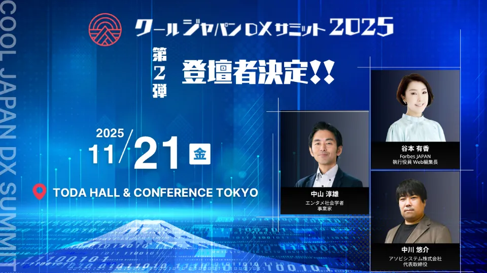 2025年11月21日(金)、東京都中央区京橋に位置するTODA HALL&CONFERENCE TOKYOにて、「クールジャパンDXサミット2025」が開催されます。このサミットは、日本の文化や経済の未来を切り開く重要なイベントとして、国内外から注目されています。今回は、その第二弾登壇者が発表され、豪華な顔ぶれが登場します!