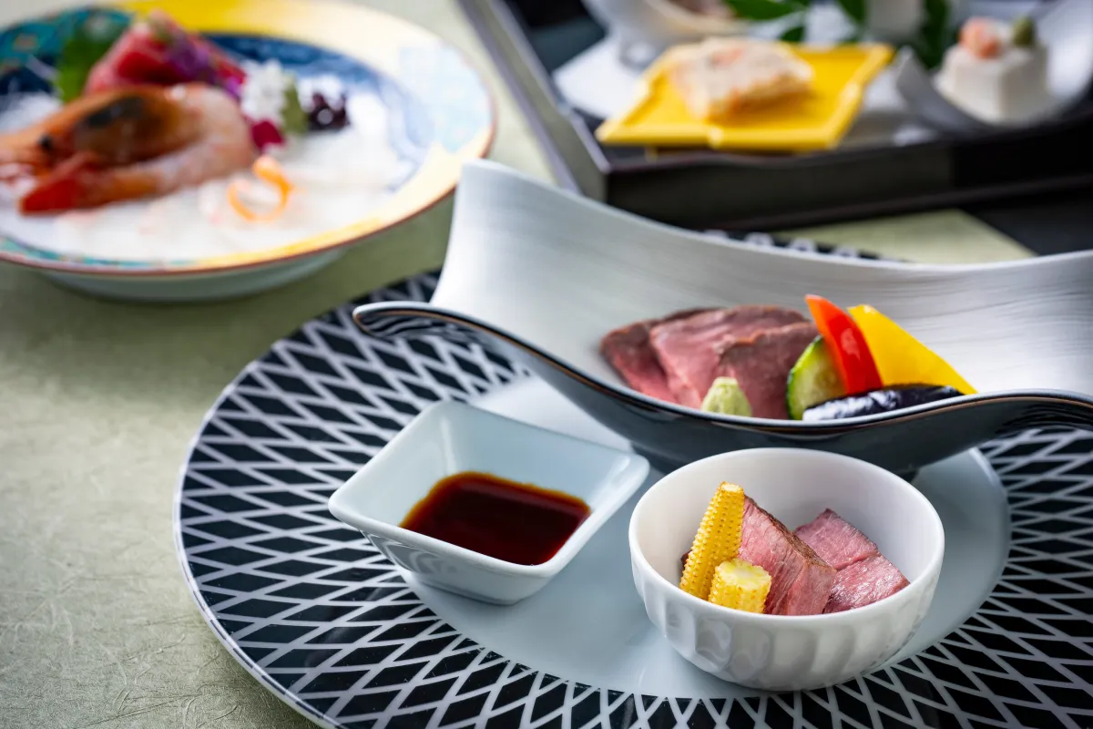 また、和食レストラン「清水」では、特別会席「清水会席-巡旅-」が提供されます。料理長自慢のコースには、ワインで育ったブランド豚の味噌漬け、米沢牛のローストなどが用意され、特に食材の新鮮さと技術の高さを実感できます。コースの料金は15,000円で、豊かな食文化を体験したい方にはうってつけです。