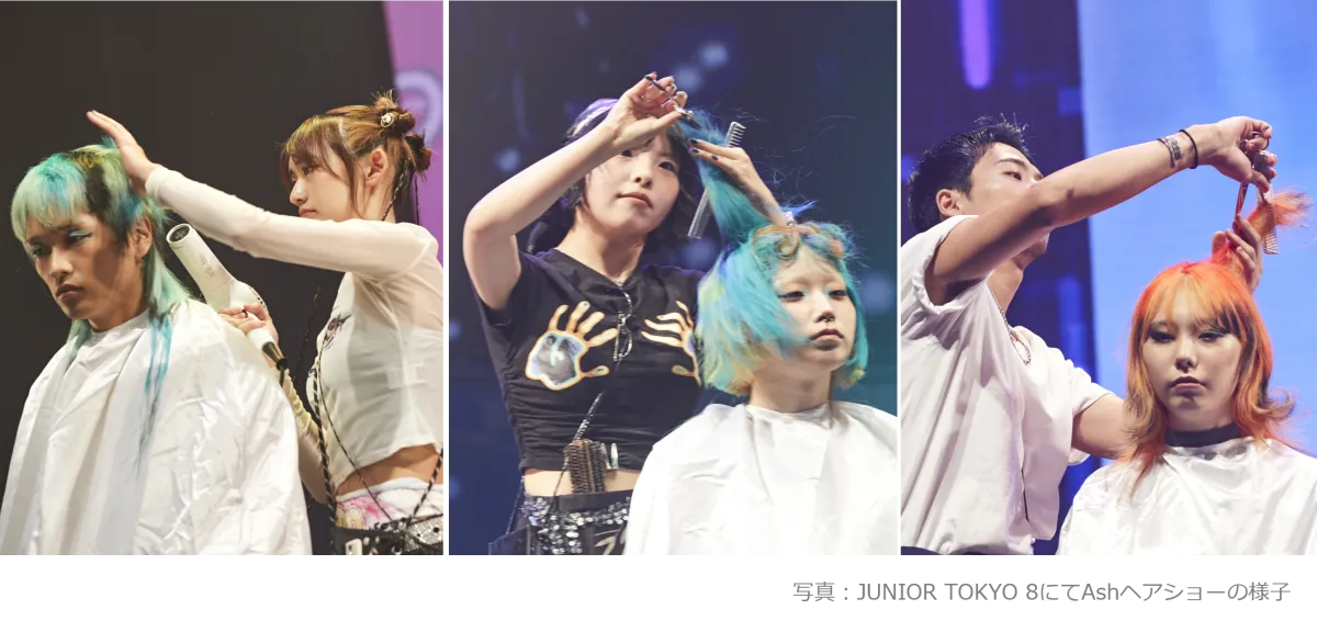 美容室Chainの一つであるAshが、2025年9月16日(火)に渋谷のSpotify O-EASTで開催された、「JUNIOR TOKYO 8」に参加しました。本イベントは、美容師アシスタントが主役となるヘアショーとして、14のサロンが集結し、スタイリストデビューを目指す若手美容師たちの成長の場となっています。今回で8年連続の参加を果たしたAshの若手の才能が、観客の前で開催を盛り上げます。