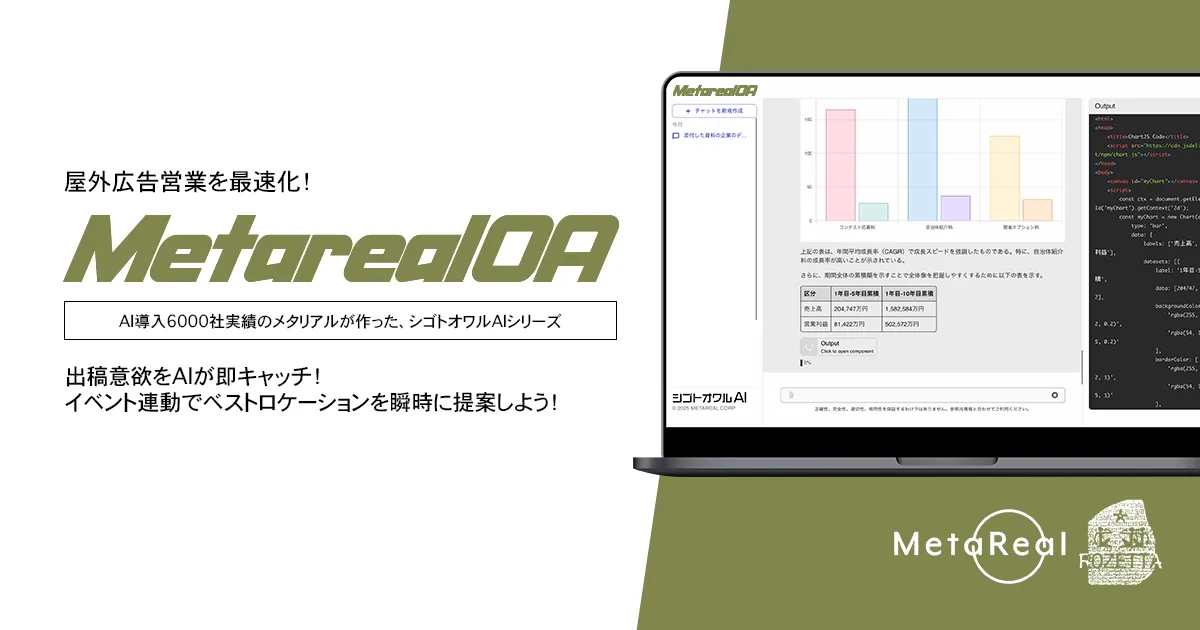 10月28日、株式会社ロゼッタは屋外広告スペースの需要分析を行う新しいAIエージェント「Metarealアウトドアアド」(以下、Metareal OA)を発表しました。これにより、企業はリアルタイムでの広告出稿の適合性を見極めやすくなります。