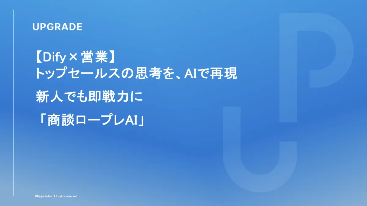 「商談ロープレAI」に関する詳細な情報やお申込みは、株式会社アップグレードの公式ウェブサイトをご参照ください。