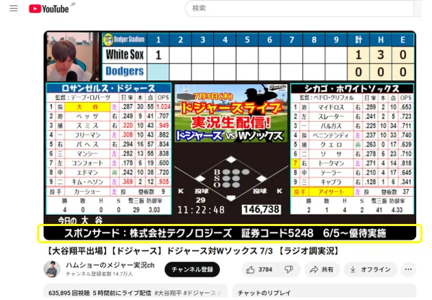 最近、UUUM株式会社は、人気のYouTubeクリエイター「ハムショー」とのスポンサー契約を発表しました。これにより、ハムショーが運営するYouTubeチャンネル「ハムショーのメジャー実況ch」において、UUUMの露出を図ることになります。このチャンネルでは、主にドジャース戦をラジオ調で実況生配信しており、多くのファンに支持されています。