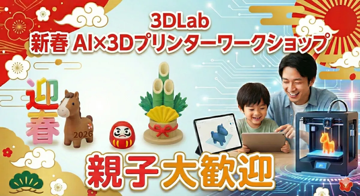 東京都文京区の3DLabで2026年1月4日(日)、新春スペシャルバージョンとして開催される「AI × 3Dプリンタ体験会」をご紹介します。このイベントは、年明けの最初のものづくり体験として、訪れる方々に貴重な時間を提供します。大人から子供まで、誰でも楽しめる内容が盛りだくさんです。