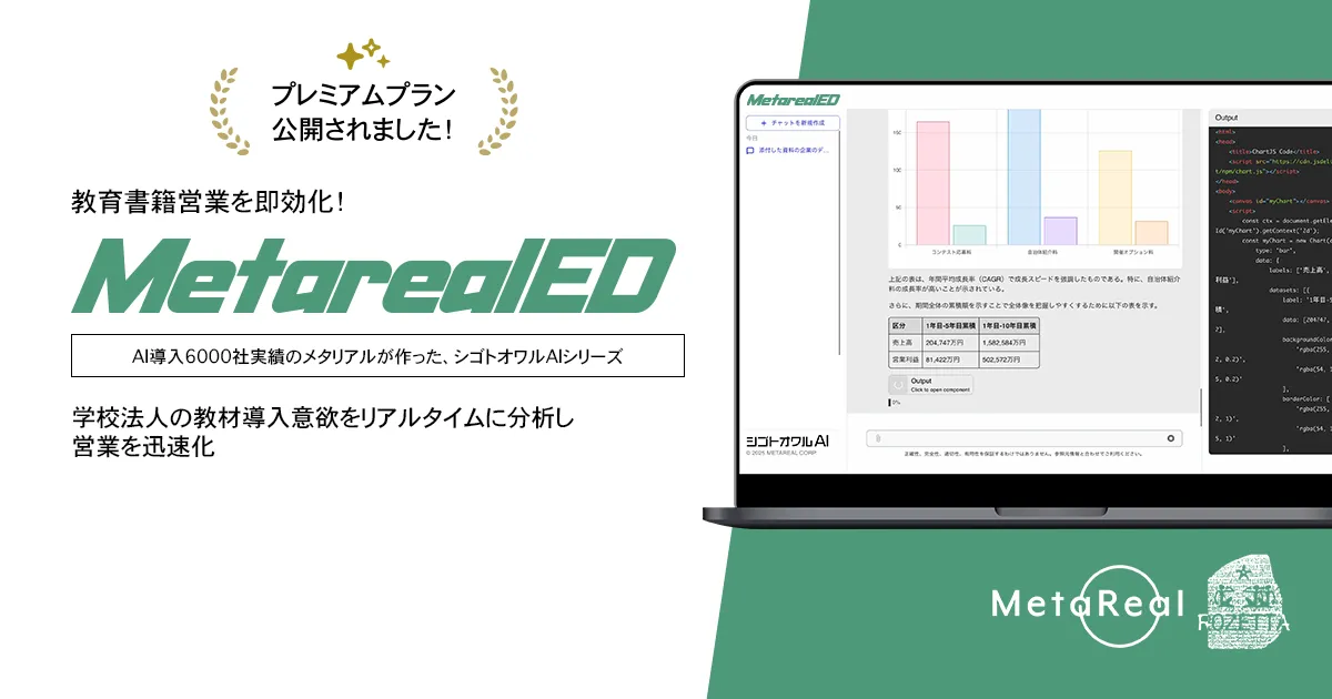 メタリアル・グループの株式会社ロゼッタが提供する新しい教材導入支援AIエージェント『Metareal エデュブックス』(以下、Metareal ED)が、2026年1月8日よりプレミアムプランのサービスを開始しました。このツールは、教育機関が教材を採用するための意欲を分析し、最適な提案を行うことを可能にします。