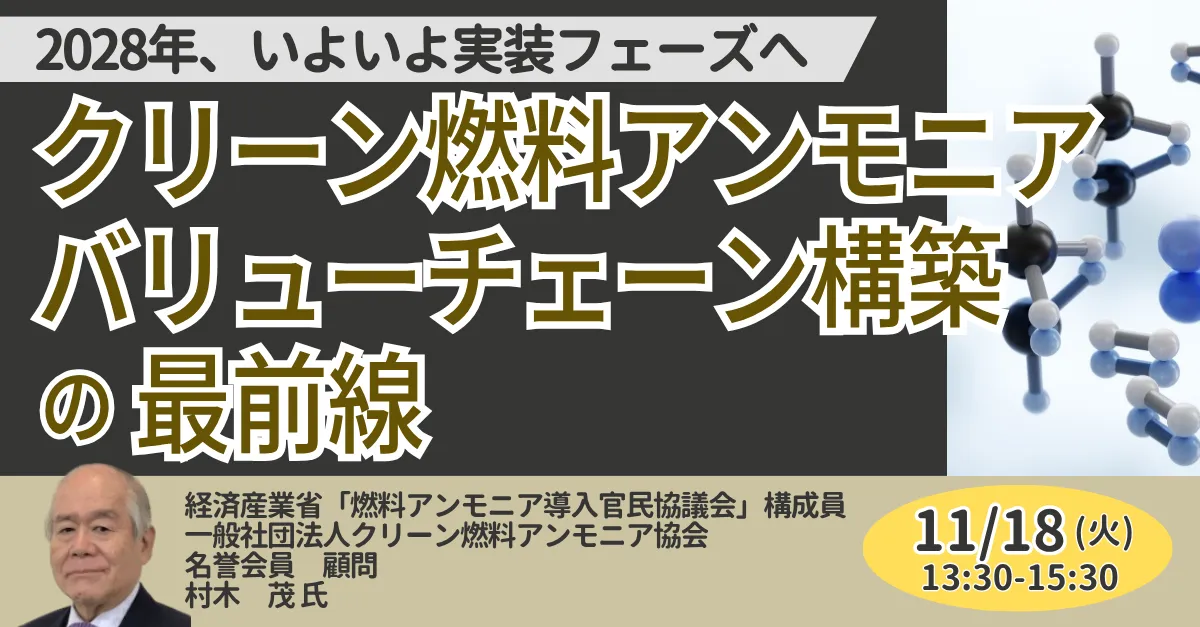 2025年11月18日、クリーン燃料アンモニアに関する重要なセミナーが開催されます。主催者である日本計画研究所(JPI)は、経済産業省の協力を得て、クリーン燃料アンモニアのバリューチェーン構築について、専門家を招いた講義を行います。講師には、一般社団法人クリーン燃料アンモニア協会の名誉会員顧問である村木茂氏を迎え、この分野の最新動向を詳しくお伝えいたします。