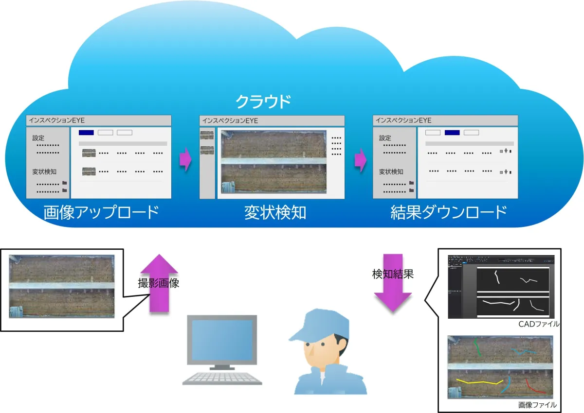 キヤノンは2019年12月に、従来の点検手法であった人力をデジタル技術で補うため、このサービスを開始しました。その趣旨は、慢性的な人手不足に対してAIを駆使して労力を軽減し、さらには作業の効率化を図ることにあります。2024年からは「インスペクションEYE for インフラ Cloud Edition」として、クラウド上での変状検知も可能になり、ますます多様なニーズに応える形となりました。